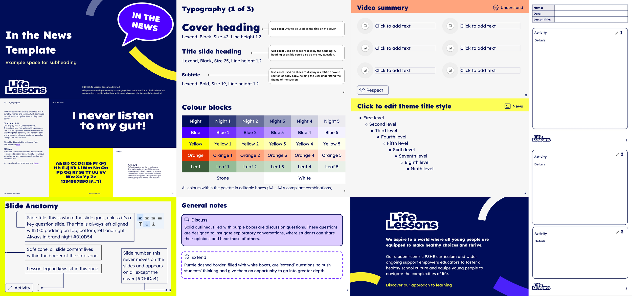 How can the brand guidelines and Life Lessons school products be iterated to meet accessibility standards, whilst prioritizing a flexible and clear user experience for the Life Lessons Product team to continue creation lessons?